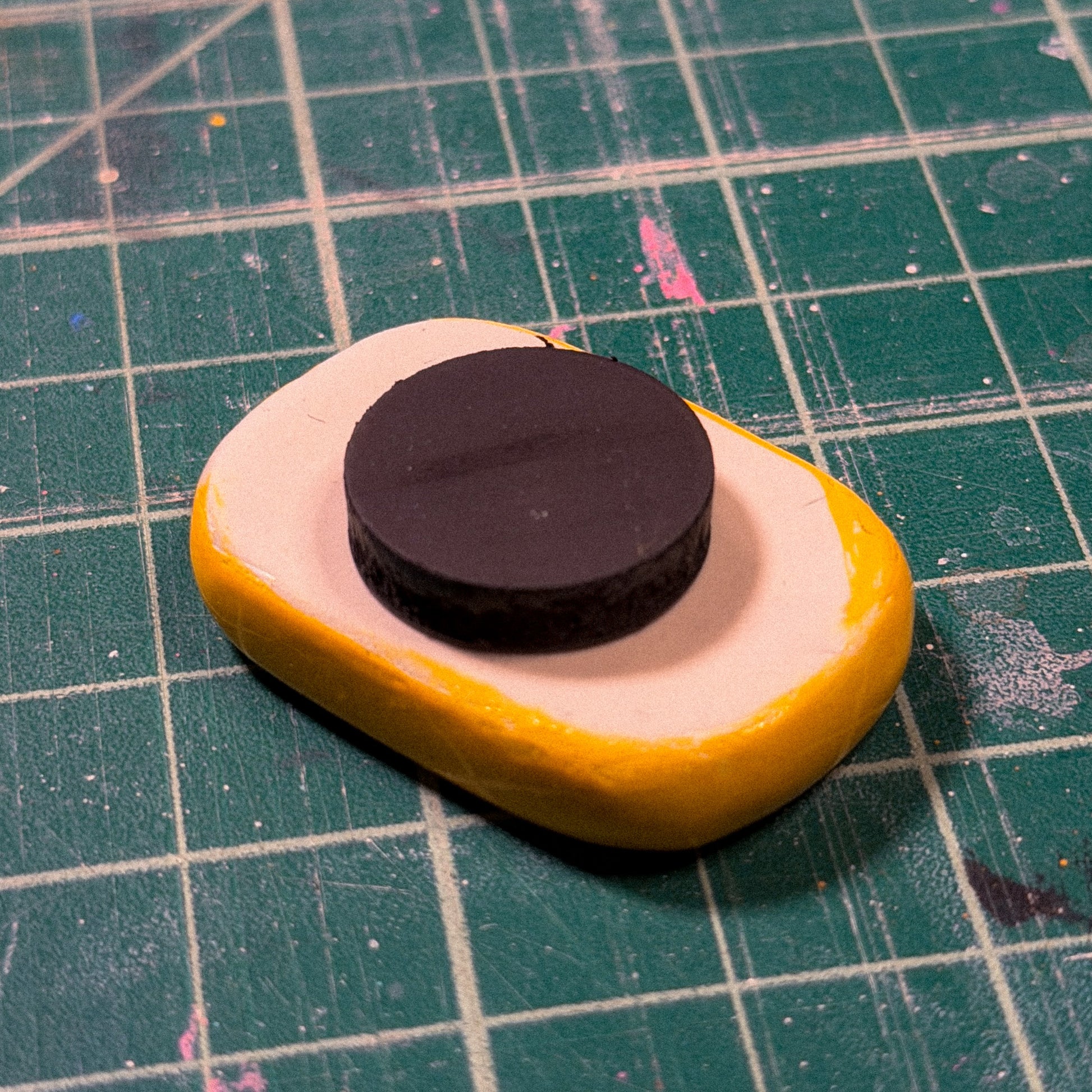 Sculpted with polymer clay, painted with acrylic paint, and glazed with UV resin.