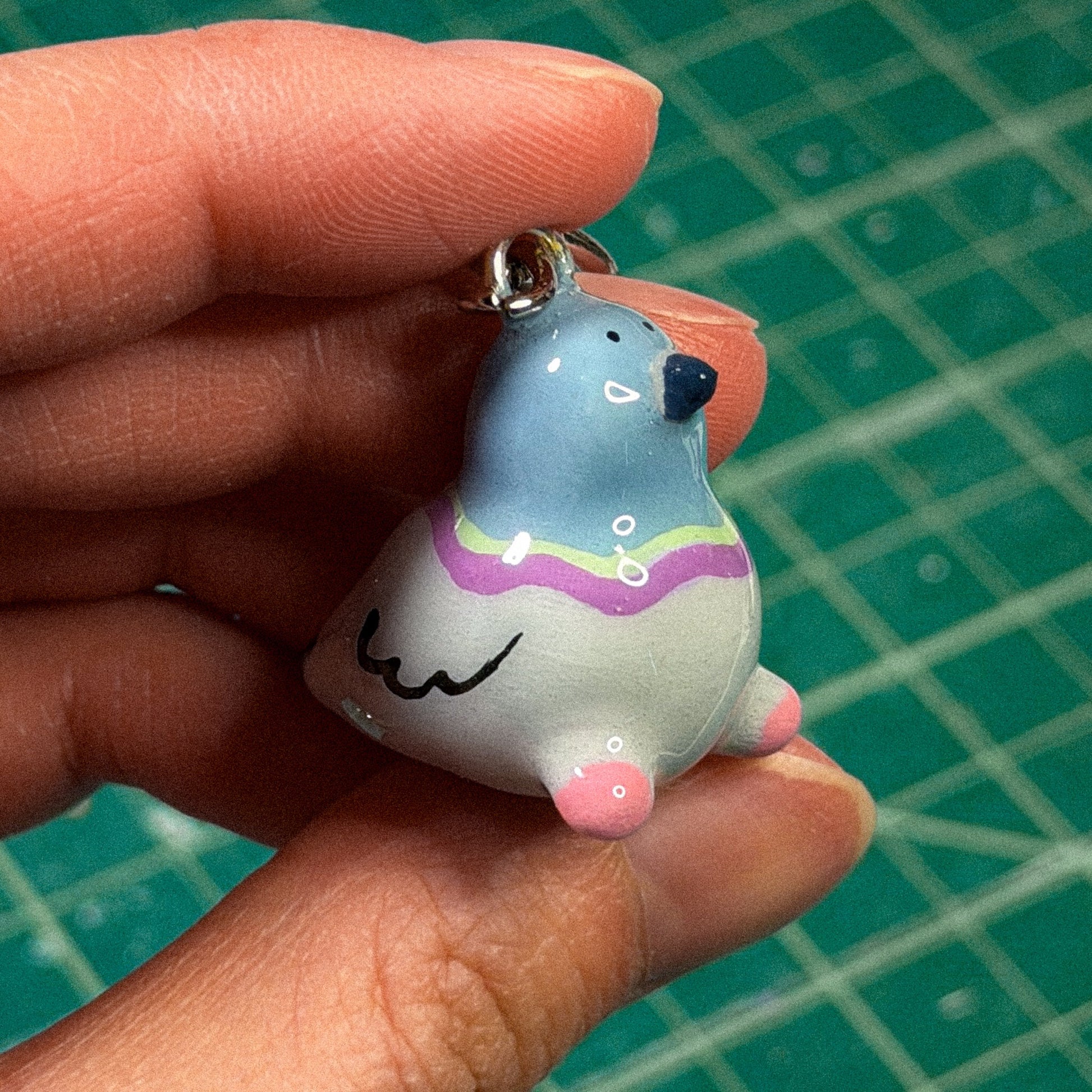 Sculpted with polymer clay, painted with acrylic paint, and glazed with UV resin.